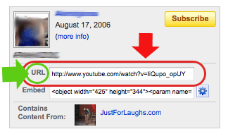 - Vá até ao site do Youtube e escolha um video. Do lado direito do video, onde estão as informações do membro, repare que há um link ao lado da sigla URL: